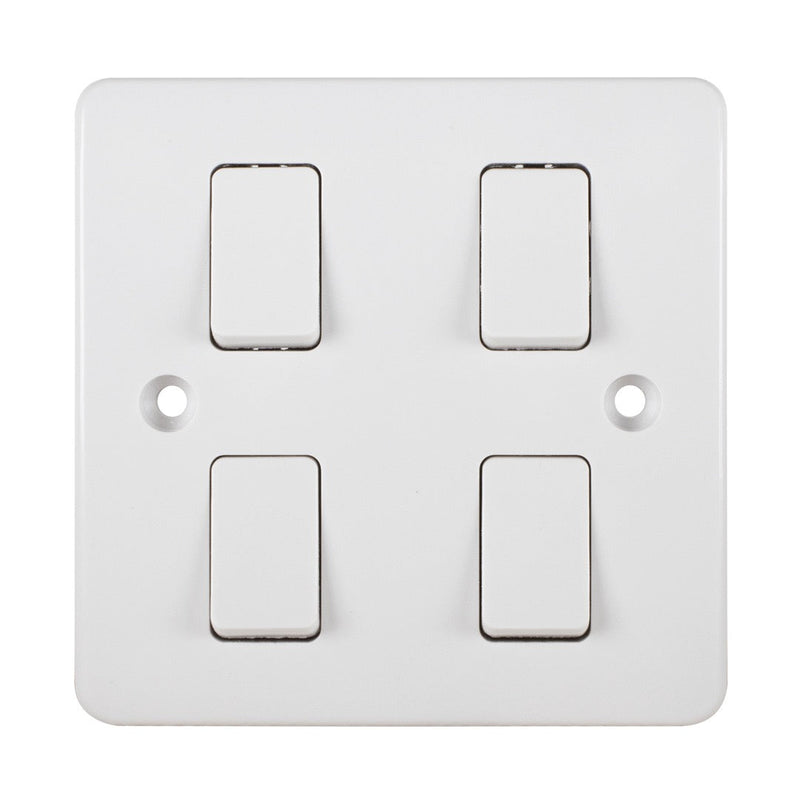 This standard range Tronic 4 gang 2 way switch in white has smooth edges to fit into the modern style of ones home or office.  Additional Information Colour White Amp 10A Voltage AC 220-240 Item Dimensions H 90mm x W 90mm Material Bakelite Installation Assembled Warranty 1 Year Application By the entrance