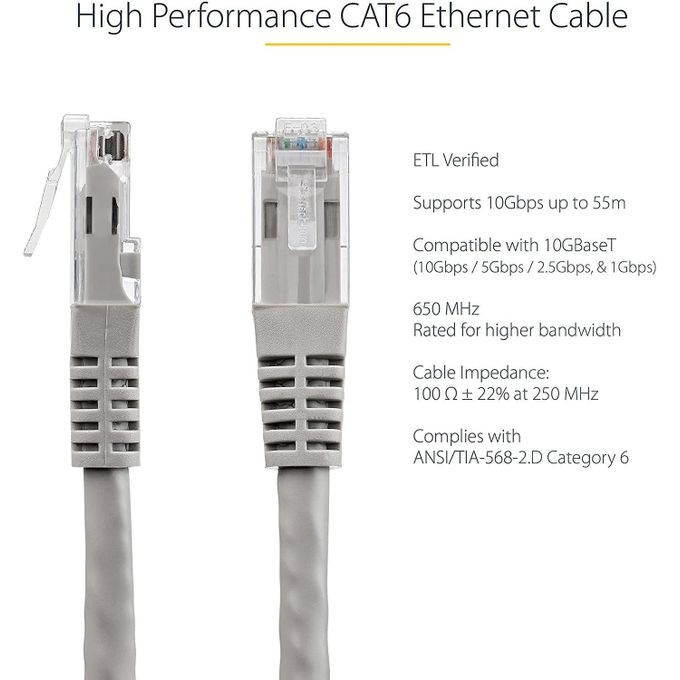 This Cat6 cable delivers reliable Gigabit network connections, which ensures high-performance capability for your demanding Ethernet applications. Find the length and colour you need This 6-foot White patch cable is perfect for standard applications such as connecting from a wall jack to your laptop docking station or desktop computer. For easier network installations, our Cat6 patch cables are available in a wide variety of lengths and colours. This ensures you have the right size of cable available when you need it and it lets you colour code your connections for a more organized setup. Snagless RJ45 clips help protect your network connections For trouble-free cable runs, this durable cable features Snagless connectors that protect the RJ45 clips during installation, making them less likely to snag or break. The cable also features molded boots which offer connector strain relief by stopping the RJ45 connector termination points from bending at sharp angles. This reduces the risk of damage to the cable, which could decrease network connectivity and performance. 100% copper for outstanding value Get the highest value for your cable investment with our Cat6 Ethernet cables. Each of our patch cables is manufactured using high-quality copper conductors and they are carefully constructed and d, to keep Near-End Crosstalk (NEXT) well within acceptable limits. 24-Gauge wire for high-performance network connections ensure high-performance capability for your demanding Ethernet applications, such as Power-over-Ethernet and 4K or 1080P video streaming, using cables that include 24 AWG copper. 50-Micron gold connectors provide peak conductivity You can rely on our RJ45 connectors to deliver optimum conductivity while eliminating signal loss due to oxidation or corrosion. The N6PATCH6WH is backed by StarTech.Com’s lifetime warranty for guaranteed reliability.